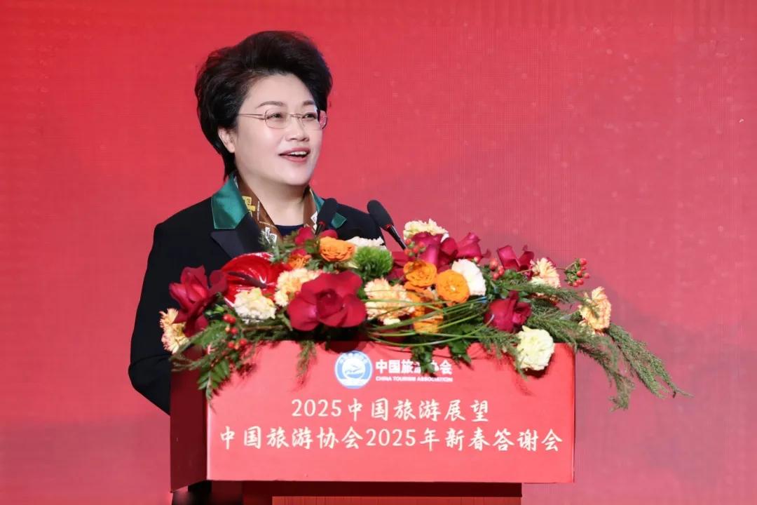葛磊在会上公布中国旅游协会2025年重要活动。2025年中国旅游协会将重点围绕三个关键词开展工作:一是“旅游强国”。跟国家意志保持同频共振,协会要研究旅游业对国民经济的总体贡献,以旅游的方式去提升中国的全球影响力。二是“产业融合”。旅游产业的增量更多来自于跨界融合,应积极打破边界,推动多产业的对话合作。三是“市场主体性”。旅游人应坚守自己的阵地,弘扬企业家精神,坚持长期主义,坚守使命感,把精力投入在打磨产品、提升价值和持续创新。为此,2025年将举办“中国服务”·旅游产品创新大会、中国旅游高质量发展研讨会、世界级旅游品牌建设研讨会、中国旅游企业家年会、未来旅游领袖学习营和非遗旅游融合创新季等多个创新活动,为行业高质量发展赋能。